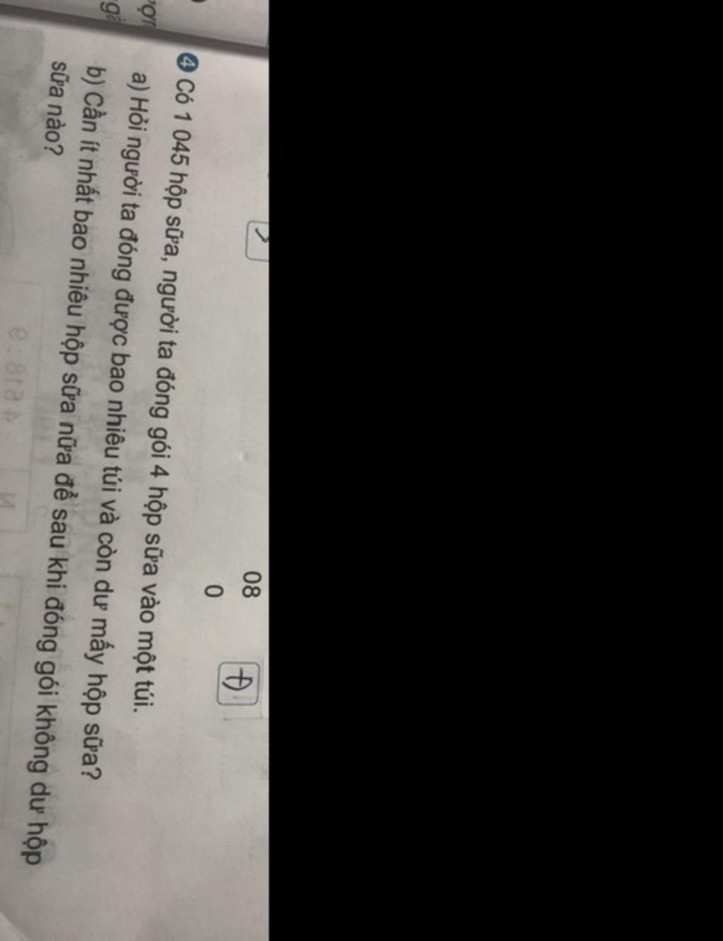 `b,` Cần ít nhất số hộp sữa để sau khi đóng không dư hộp nào: