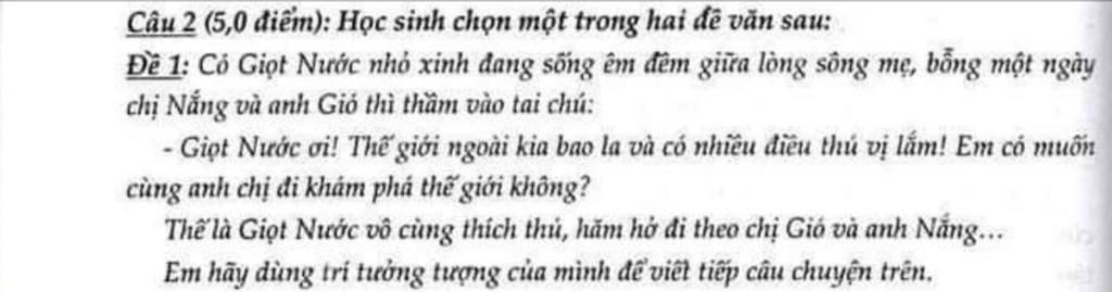 Đề 1: Cỏ Giọt Nước nhỏ xinh đang sống êm đêm giữa lòng sông mẹ, bỗng một ngày