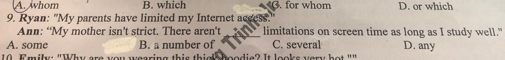 Đáp án: D any