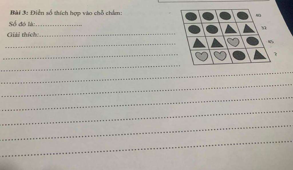 Gọi ô tròn là `a,` ô tam giác là `b,` ô trái tim là `c` ta có `:`