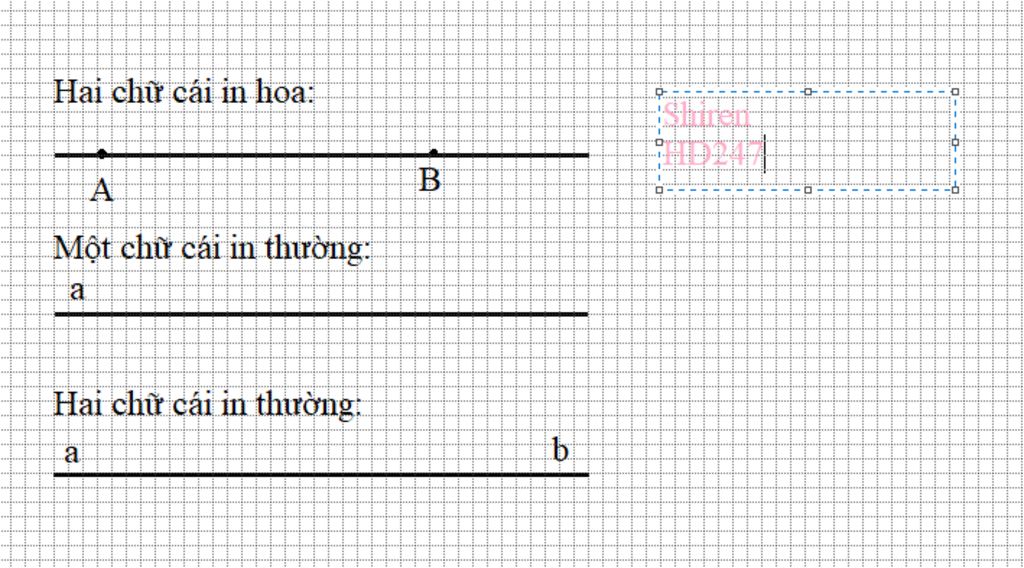 `->` Các chữ cái in hoa được dùng duy nhất trong hình học là để chỉ tên gọi của các điểm. Chữ cái in hoa thì luôn đi với một điểm trên đường thẳng chứ không phải là một đường thẳng