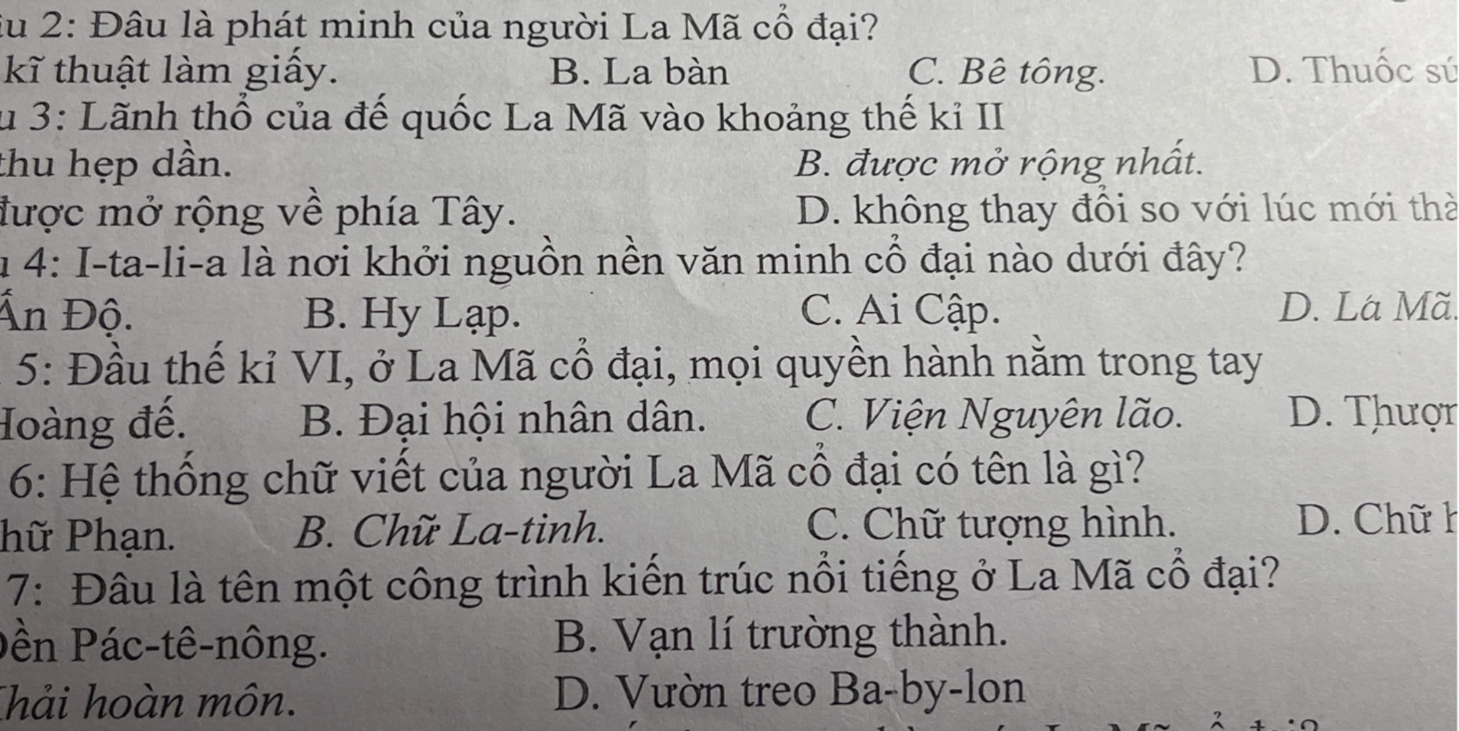 Câu `2` : Đâu là phát minh của người La Mã cổ đại?