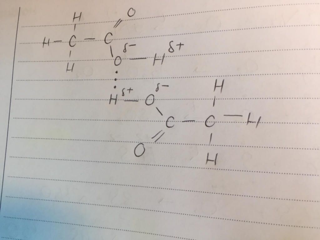 axit axetic CH3COOH sôi ở 118°C. Hãy biểu diễn liên kết hydro giữa hai phân tử carboxylic acid.