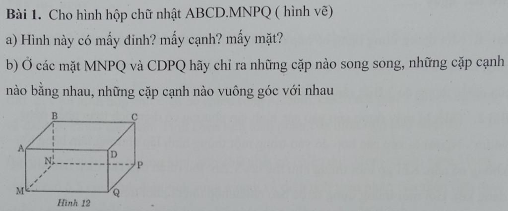 Bài 1. Cho hình hộp chữ nhật ABCD.MNPQ ( hình vẽ)