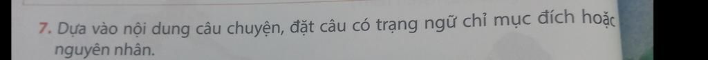 Câu `7` : Dựa vào nội dung câu chuyện, đặt câu có trạng ngữ chỉ mục đích hoặc nguyên nhân