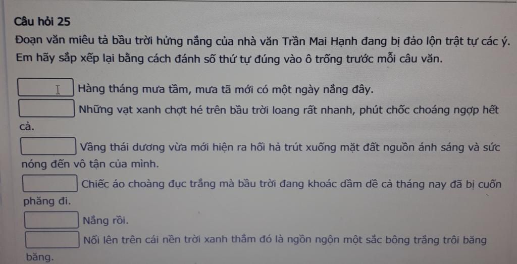 `25.` Dựa vào bài " Hửng nắng" của nhà văn Trần Mai Hạnh :