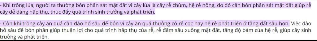 Tại sao khi trồng lúa ngta thường bón phân sát mặt đất , còn khi trồng cây ăn quả thì cần đào sâu hố để bón ?