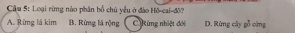 `->` Hô-cai-đô là `1` đảo của Nhật Bản có khí hậu lạnh hơn so với các khu vực khác của Nhật Bản. Vì thế nên loại rừng chủ yếu ở đây là rừng lá kim với cây thông, thông đỏ, một số loài cây lá kim khác