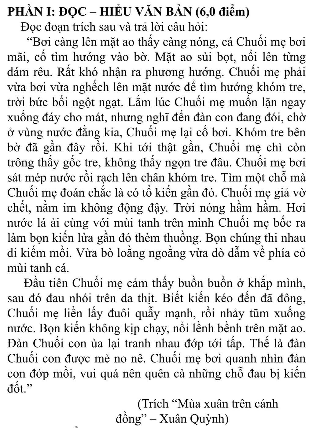 Câu 2 : Vì sao chuối mẹ rạch lên chân khóm tre tìm lũ kiến ? Em có nhận xét gì về hành động đó của Chuối mẹ ?
