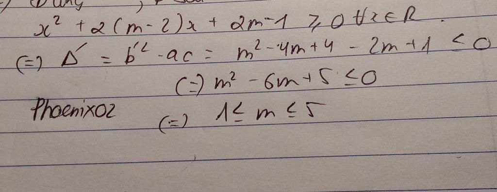 đề : x² + 2(m-2)x + 2m - 1 ≥ 0 , ∀x ∈ R :