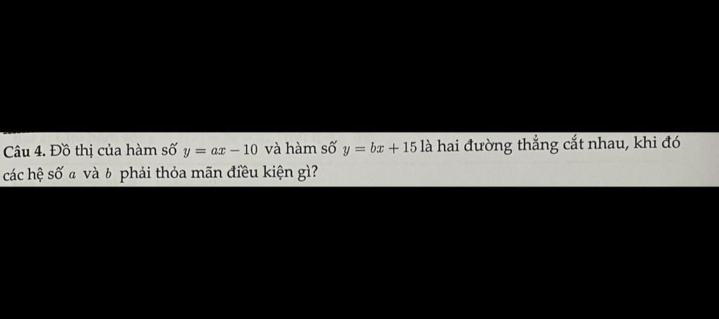 Để hai đường thẳng cắt nhau thì hệ số `a` và `b` của 2 hàm số khác nhau : `a ne b`