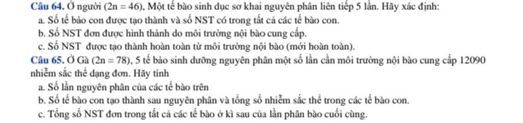 số NST mới hoàn toàn MTNB cung cấp: a . 2n . ( $2^k$ - 2 )