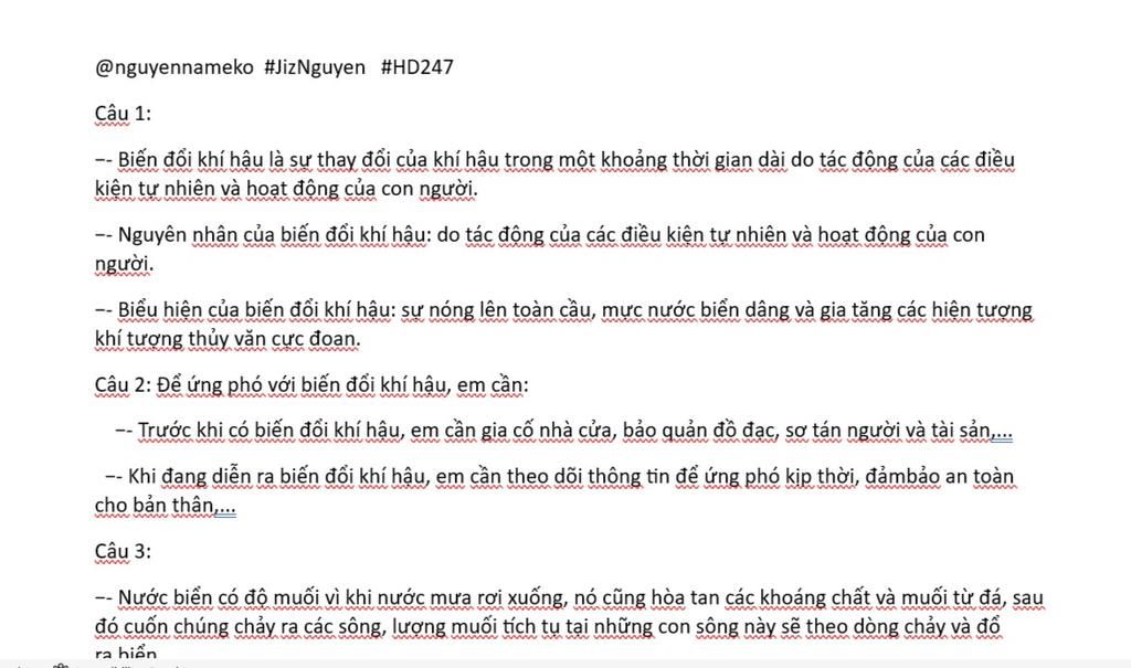 Câu 1: Thế nào là biến đổi khí hậu? Trình bày nguyên nhân và biểu hiện của biến đổi khí hậu?
