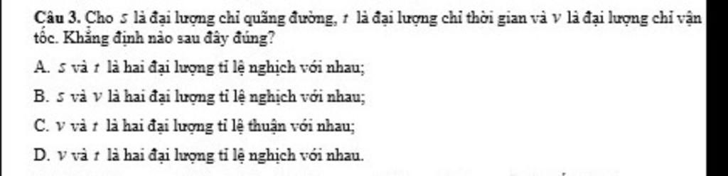 Ta thấy D là đúng (t càng tăng thì v càng giảm).