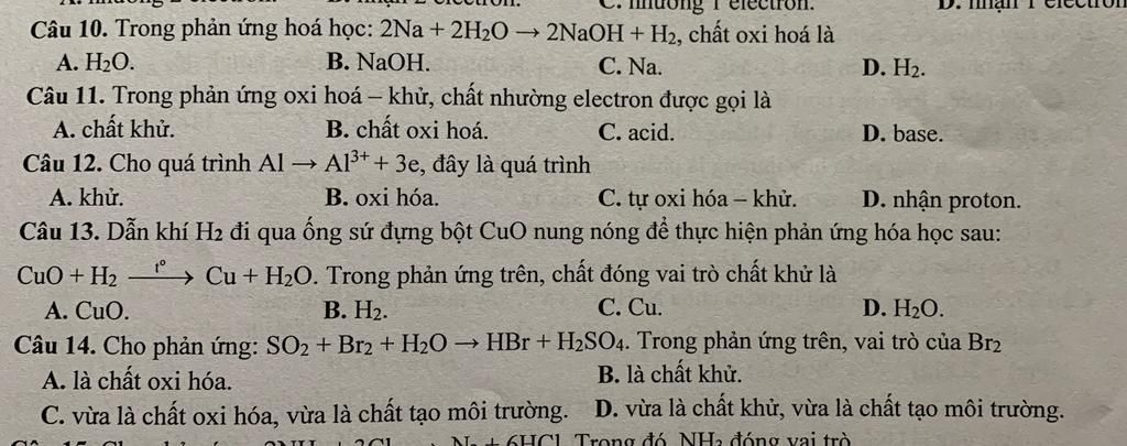 `12)` Chọn B. (quá trình oxh của chất khử)