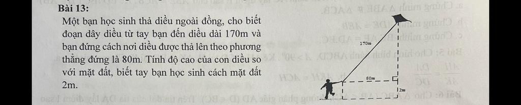 Vậy độ cao con diều so vớ mặt đất là `152\ m`