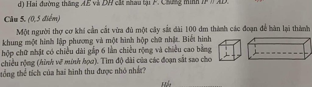 Một người thợ cơ khí cần cắt vừa đủ một cây sắt dài 100 dm thành các đoạn để hàn lại thành