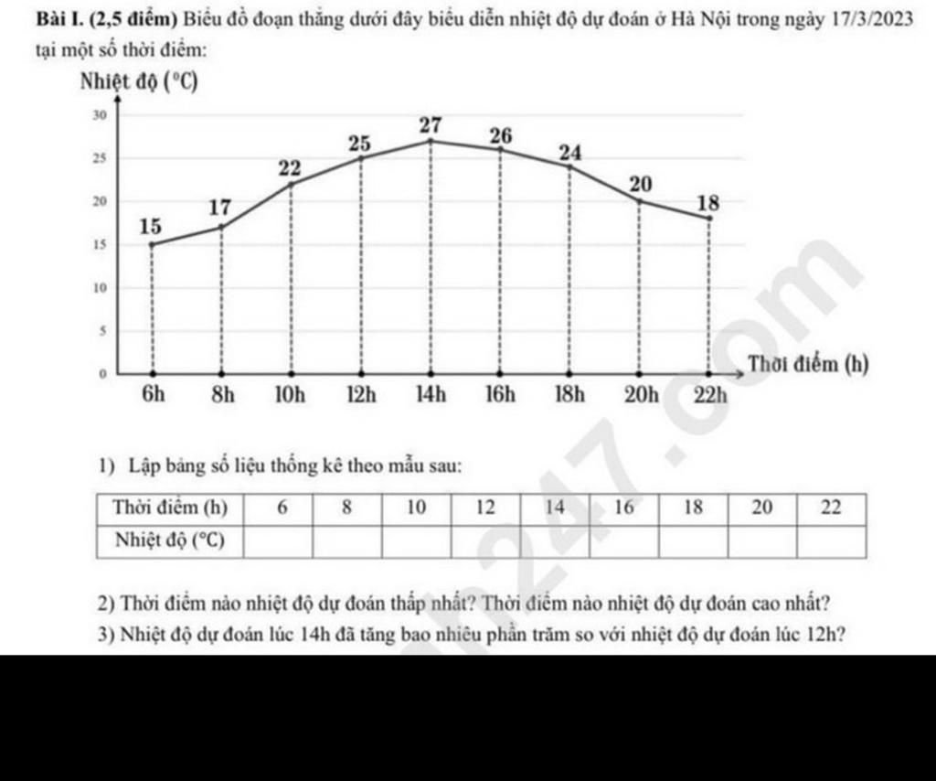 Nhiệt độ dự đoán lúc `14` giờ và `12` giờ có tỉ số phần trăm là:
