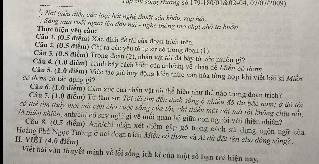 C4. Miền cỏ thơm là nơi có nhiều cỏ cây đặc trưng của xứ Huế