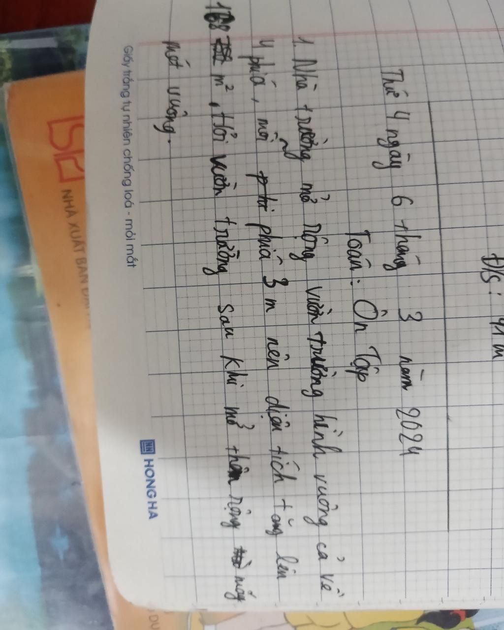 Diện tích của vườn trường sau khi mở thêm là: 17×17=289(mét vuông)