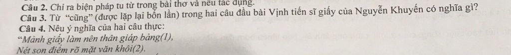Câu 3. Từ “cũng” (được lặp lại bốn lần) trong hai câu đầu bài Vịnh tiến sĩ giấy của Nguyễn Khuyến có nghĩa gì?