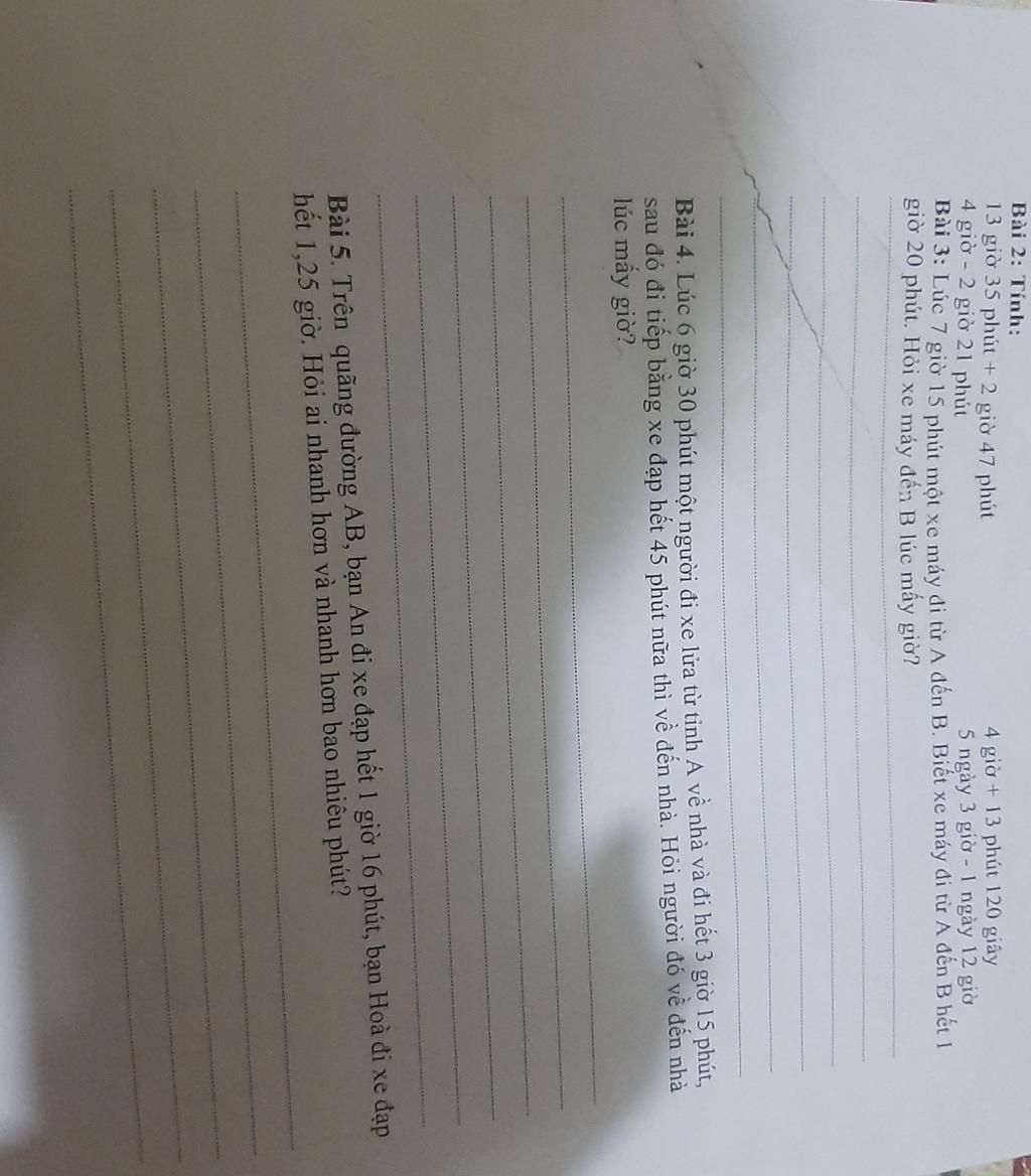 6 giờ 30 phút + 3 giờ 15 phút +45 phút = 9 giờ 90 phút = 10 giờ 30 phút