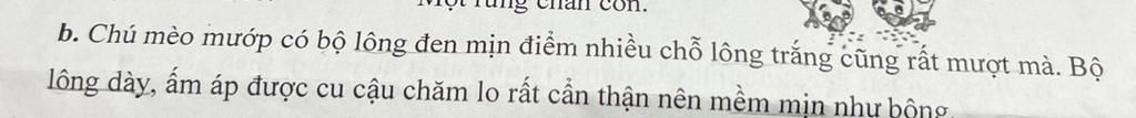Các từ chỉ đặc điểm trong câu trên là: đen mịn, trắng, mượn mà, dày, ấm áp, mềm mịn.