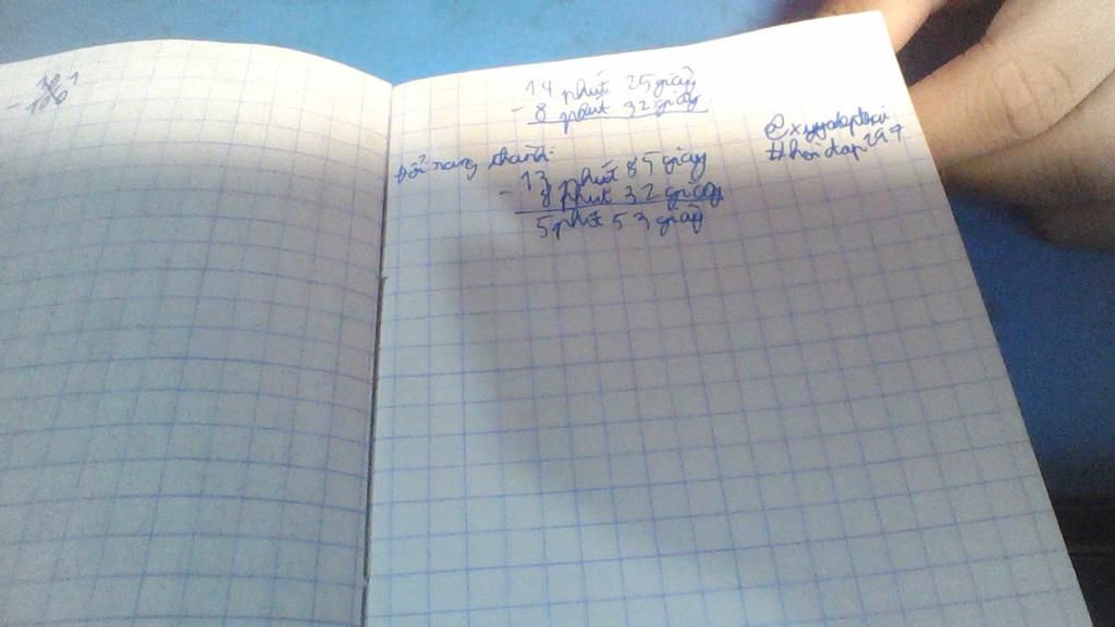 Vậy `\text{14 phút 25 giây - 8 phút 32 giây = 5 phút 53 giây}`