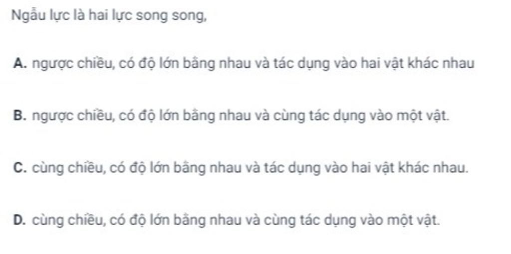 Ngẫu lực là hệ hai lực song song, ngược chiều, có độ lớn bằng nhau và cùng tác dụng vào một lực.