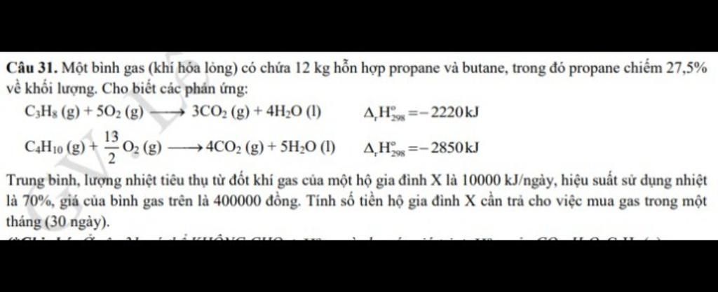 Do đó, một tháng hộ gia đình $X$ cần chi trả cho việc mua gas là giá của một bình gas loại $12(kg)$ là $400000(đồng)$