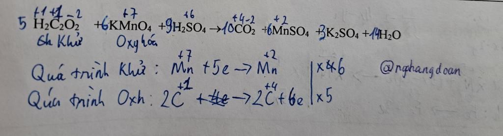 $\rm 5H_2C_2O_2+6KMnO_4+9H_2SO_4\to 10CO_2+6MnSO_4+3K_2SO_4+14H_2O$