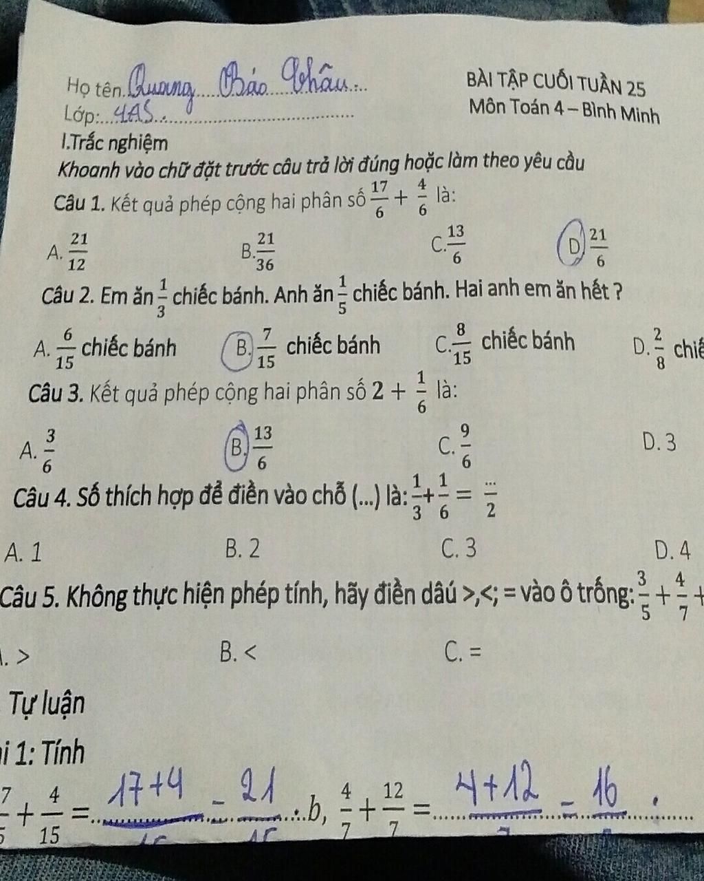 Mà số cần điền vào chỗ trống là tử số