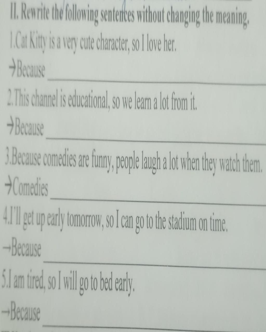 `5.` Because i am tired, i will go to bed early.