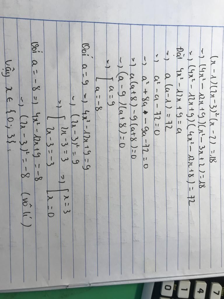 `<=>(x-1)(4x^2-12x+9)(x-2)-18=0`