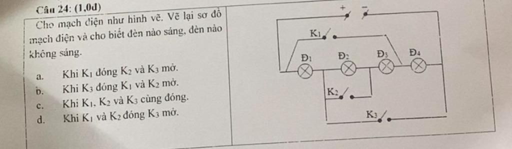 Như vậy, đèn 1, đèn 3, đèn 4 sáng; đèn 2 không sáng.