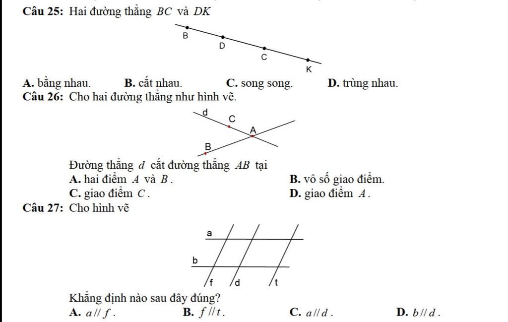 Câu 26: Cho hai đường thẳng như hình vẽ.