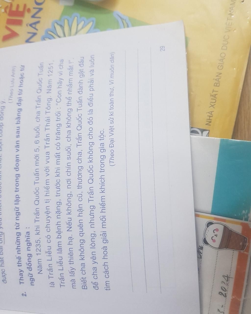 2. Thay thế những từ ngữ lập trong đoạn văn sau bằng đại từ hoặc từ