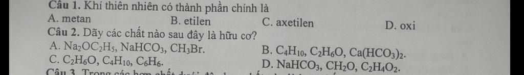 khí thiên nhiên có thành phần chính là metan $CH_4 $ (chiếm `98%`)