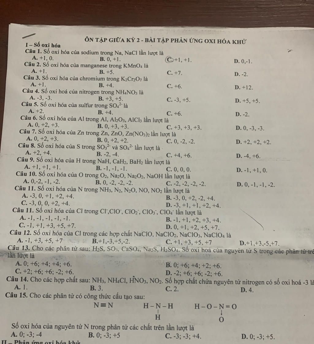 O hợp chất luôn có số oxh là -2, riêng trong các hợp chất peroxyde thì có số oxh -1