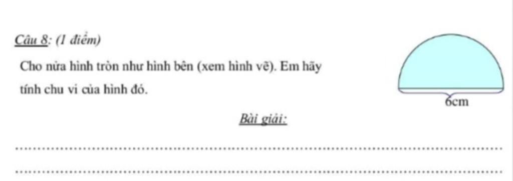 Chu vi nửa hình tròn là: