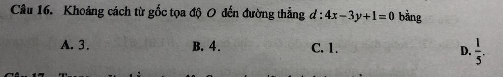 Khoảng cách từ gốc tạo độ `O` đến đường thẳng `d` là: