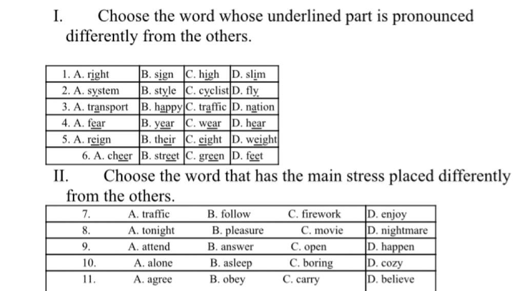 1. D phát âm là /ɪ/ - còn lại là /aɪ/