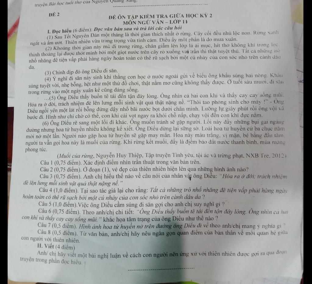 I. Đọc hiểu (6 điểm): Đọc văn bản sau và trả lời các câu hỏi