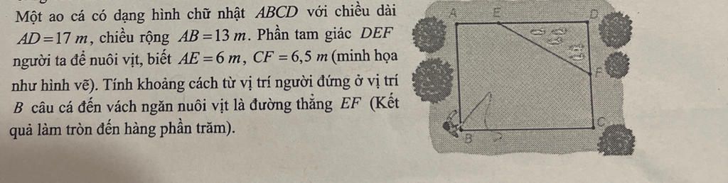 người ta để nuôi vịt, biết AE=6 m, CF = 6,5 m (minh họa
