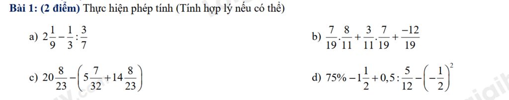 `b) 7/19 . 8/11 + 3/11 . 7/19 + (-12)/19`