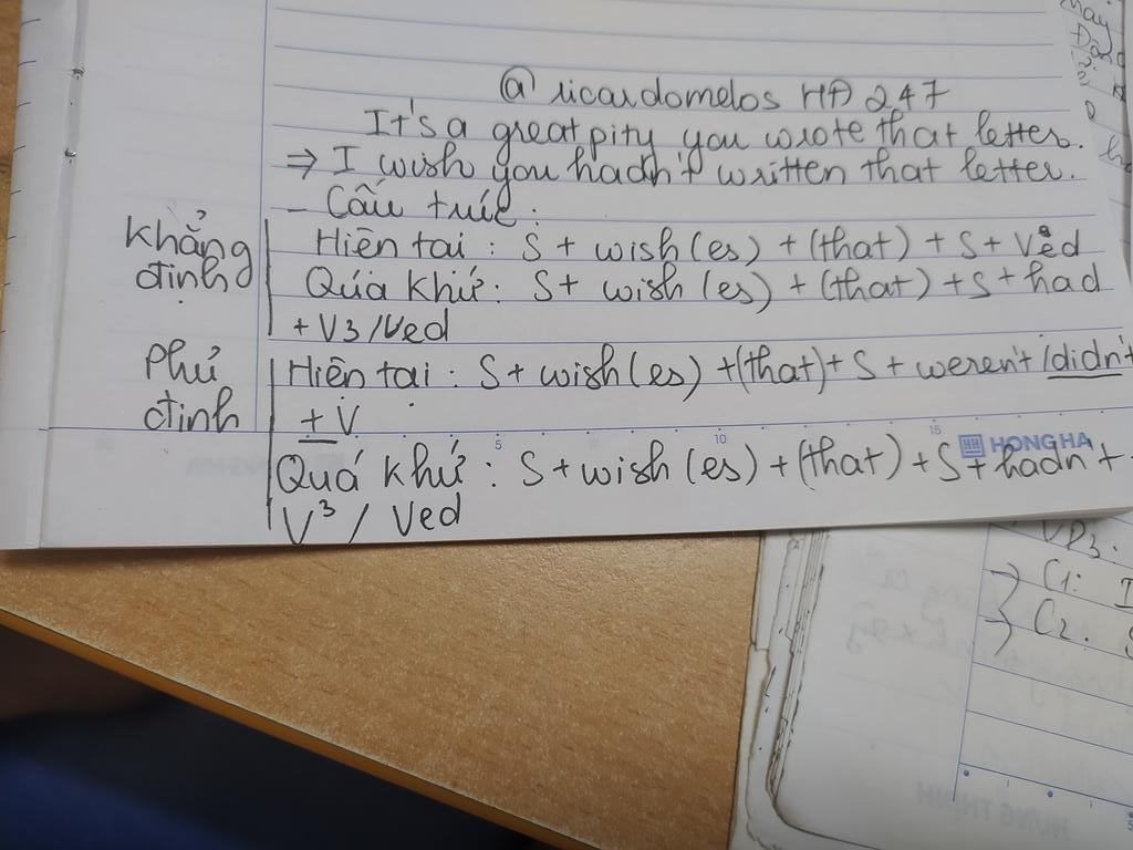 - diễn tả mong muốn hoặc ước muốn về một tình huống đã xảy ra trong quá khứ và không thể thay đổi được.