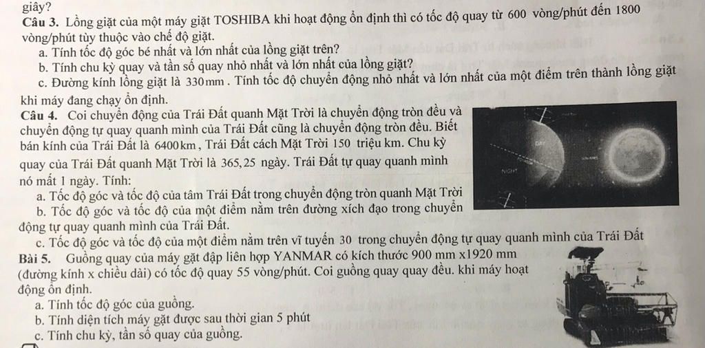 b) Tốc độ góc của 1 điểm nằm trên xích đạo là: