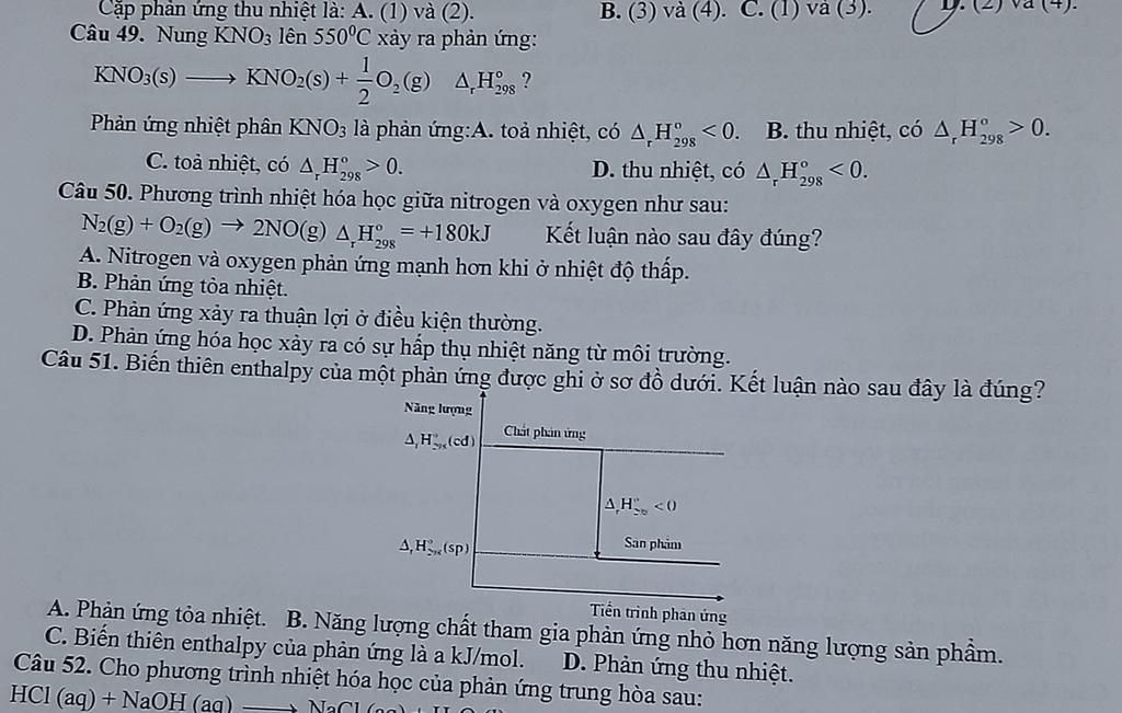 $B.$ Không đúng vì $\Sigma \Delta _fH(cd)>\Sigma \Delta _fH(sp)$