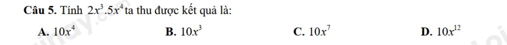 Câu 5. Tính $2x^3.5x^4$ ta thu được kết quả là:
