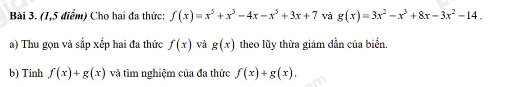 Vậy, `x = 1` là nghiệm của đa thức `f(x) + g(x)`